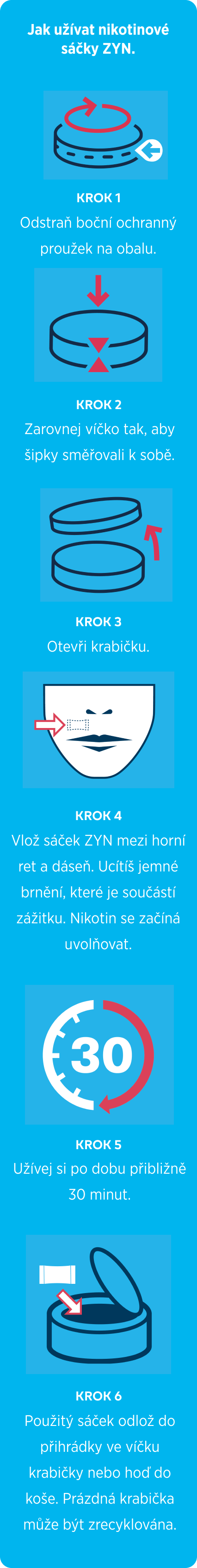 Snus a nikotinové sáčky jsou moderní alternativy bez kouře, které dospělí uživatelé užívají orálně, tedy umístěním do úst. I přes některé podobnosti jsou snus a nikotinové sáčky odlišné produkty, které dospělým uživatelům mohou usnadnit přechod z klasických cigaret.