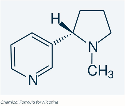Nicotine is a chemical found in the tobacco plant, a member of the “nightshade” family of plants. This family of plants includes common household fruit and vegetables such as tomatoes, potatoes, and peppers. While levels of nicotine are present in these foods, they contain far lower levels of nicotine than found in nicotine developed products. To understand the structure and properties of nicotine, we can view the nicotine chemical formula.