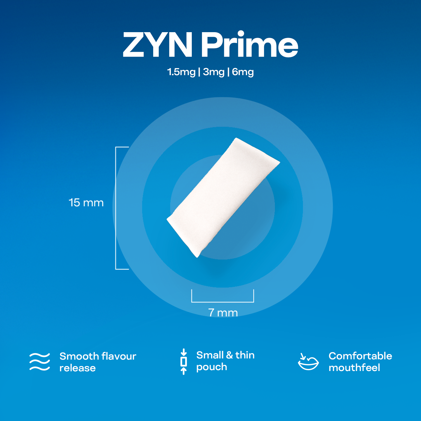ZYN Prime are small, thin nicotine pouches that offer a comfortable mouth fit. They provide a satisfyingly smooth and gradual release of flavour and nicotine for a long-lasting experience. The ZYN Prime X low(1.5mg) range also provides lower tingling sensation under the lip.
